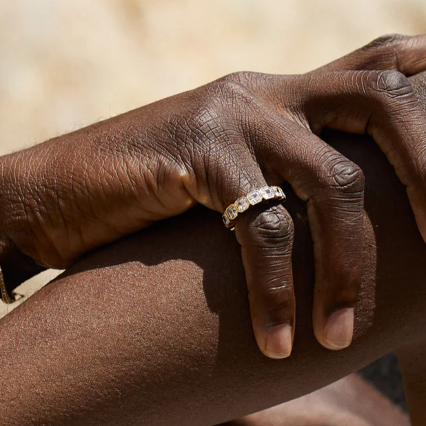 This is a minimalist design wedding ring for men and women. 6ctw halo assche cut white stones are sparkle in every angle!The ring is made of 925 silver throughout with thick gold plating which makes the luster last longer compared to other single layer plating. The style is personalized and simple, bringing more possibilities for your fashion collocation.