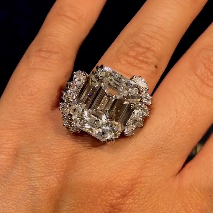 7.35ct Round & Asscher Cut White Sapphire Luxury Ring in Silver-JEWELBUYS