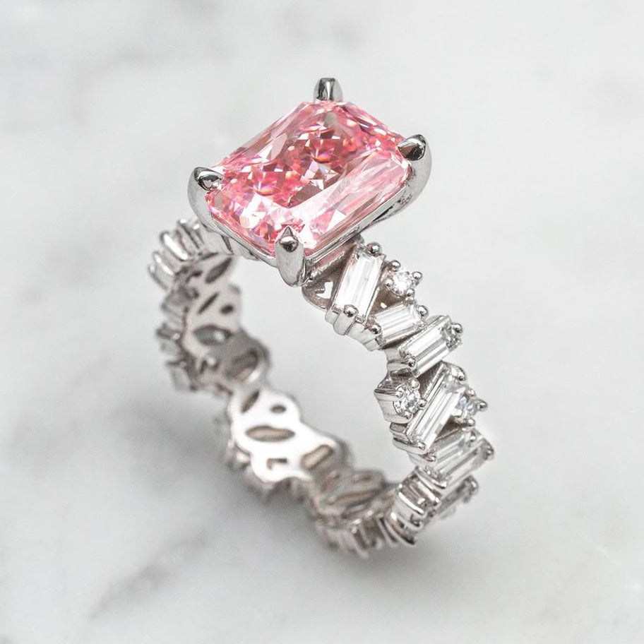 4ct Radiant Cut White Sapphire Wide Shank Engagement Ring-JEWELBUYS