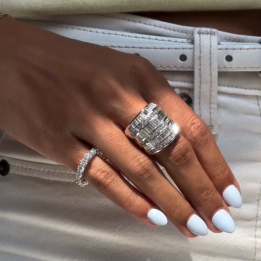Regular price From $110.95 USDSale price From $110.95 USD Regular price $157.95 USDUnit price / perShare the luxury Band, bold and brilliant. RING INFORMATION Metal: 925 Sterling Silver Plating Color: Gold Rhodium: Yes Nickel Free: Yes PRIMARY STONE Stone Type: Lab-created gemstone Primary Stone Color: White...