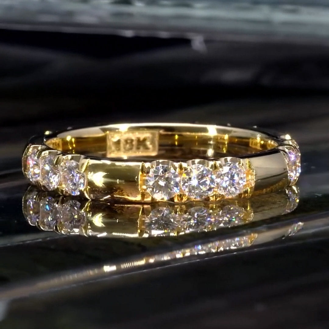 Regular price From $110.95 USDSale price From $110.95 USD Regular price $157.95 USDUnit price / perThis 18k gold ring is simple yet luxurious. The sparkling sapphires are arranged in a close row on top of the gold ring, each one reflecting...