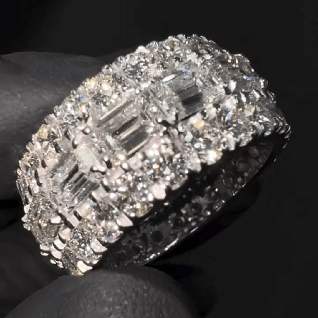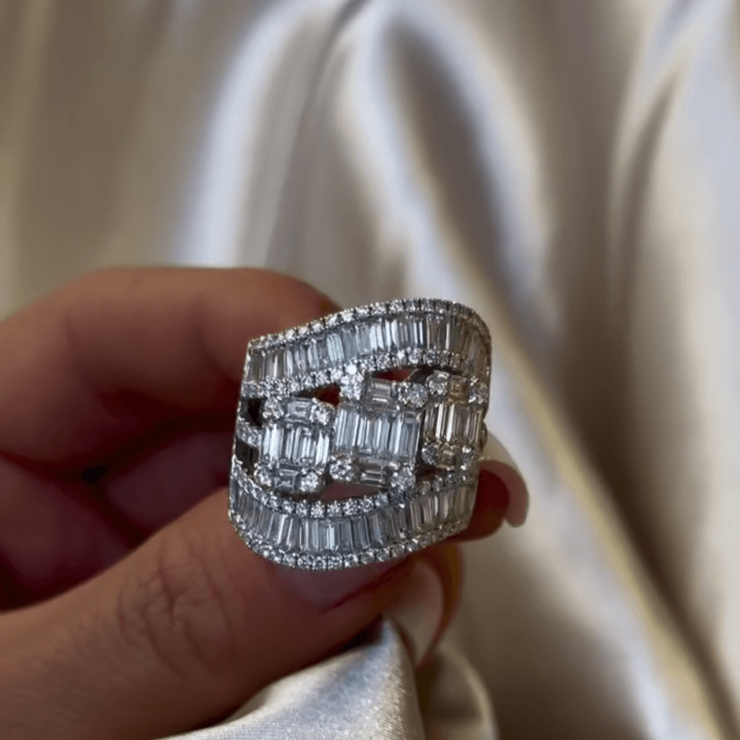 4.22 Ctw Baguette and Round White Sapphire Multi-Row Ring-JEWELBUYS