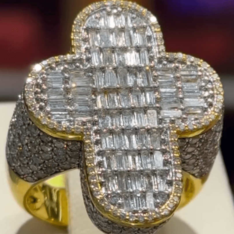 7ct Round & Baguette Cut White Sapphire Gold Cross Ring-JEWELBUYS