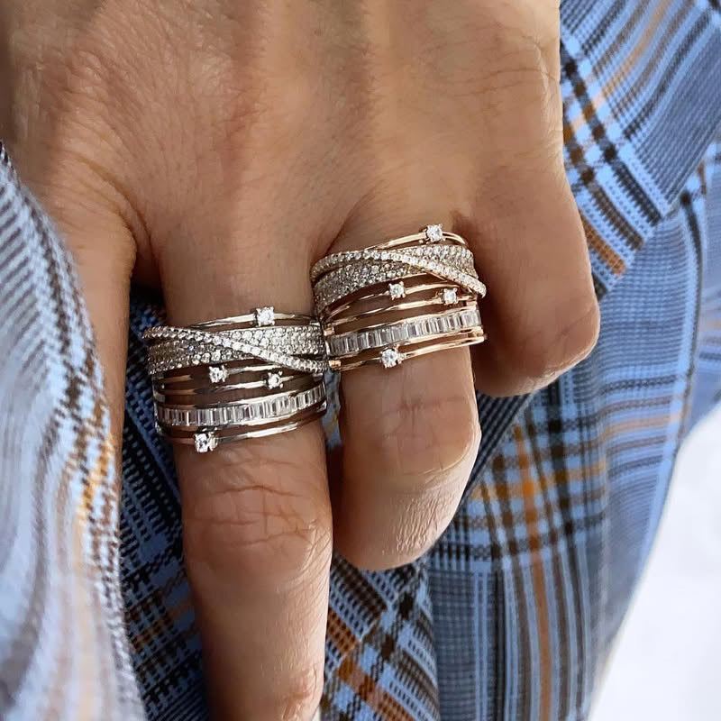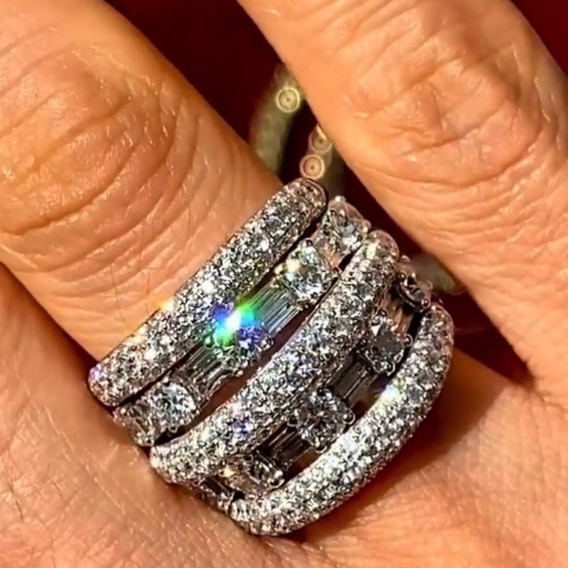 6.0Ctw Multi-Cut White Sapphire Multi-Layered Ring-JEWELBUYS