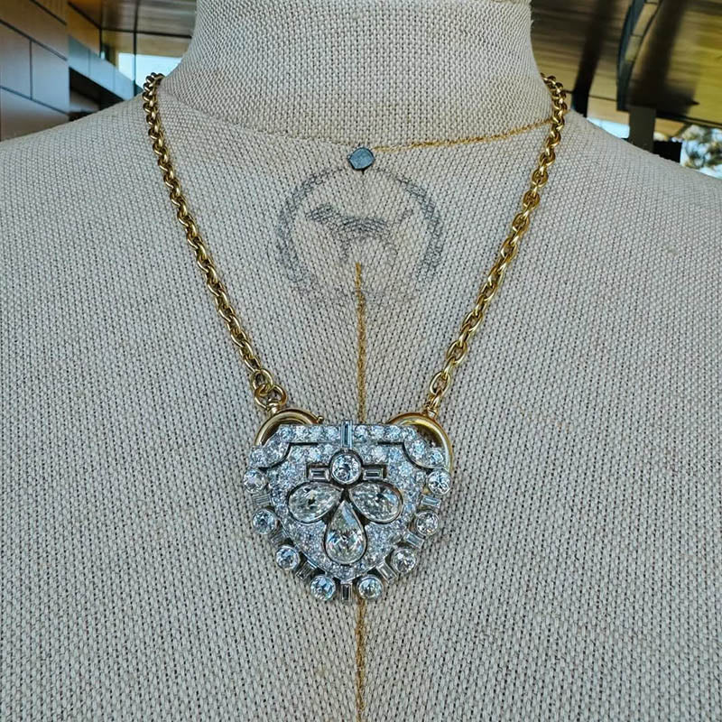 13.04Ctw Vintage Style Sapphire Brooch and Pendant Necklace-JEWELBUYS