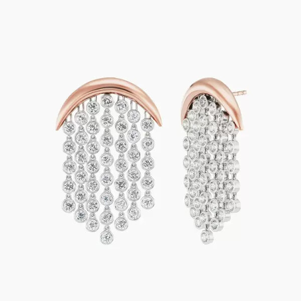 10 ctw White Sapphire Round Cut Waterfall Earrings - JEWELBUYS