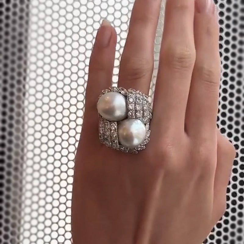 Vintage 4ct Oval Cut White Sapphire and Sided Round Cut Stones with Pearl Women's Engagement Ring in Gold-JEWELBUYS