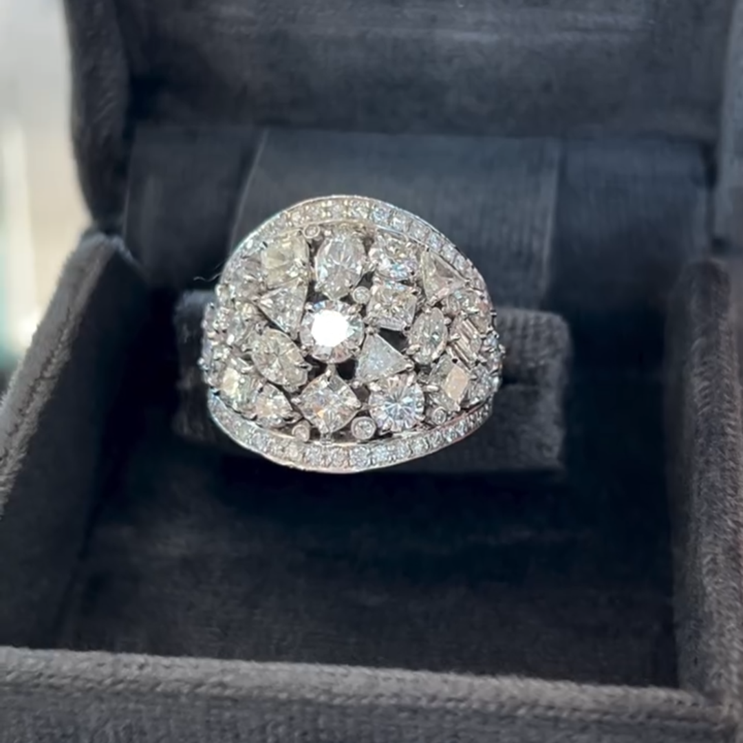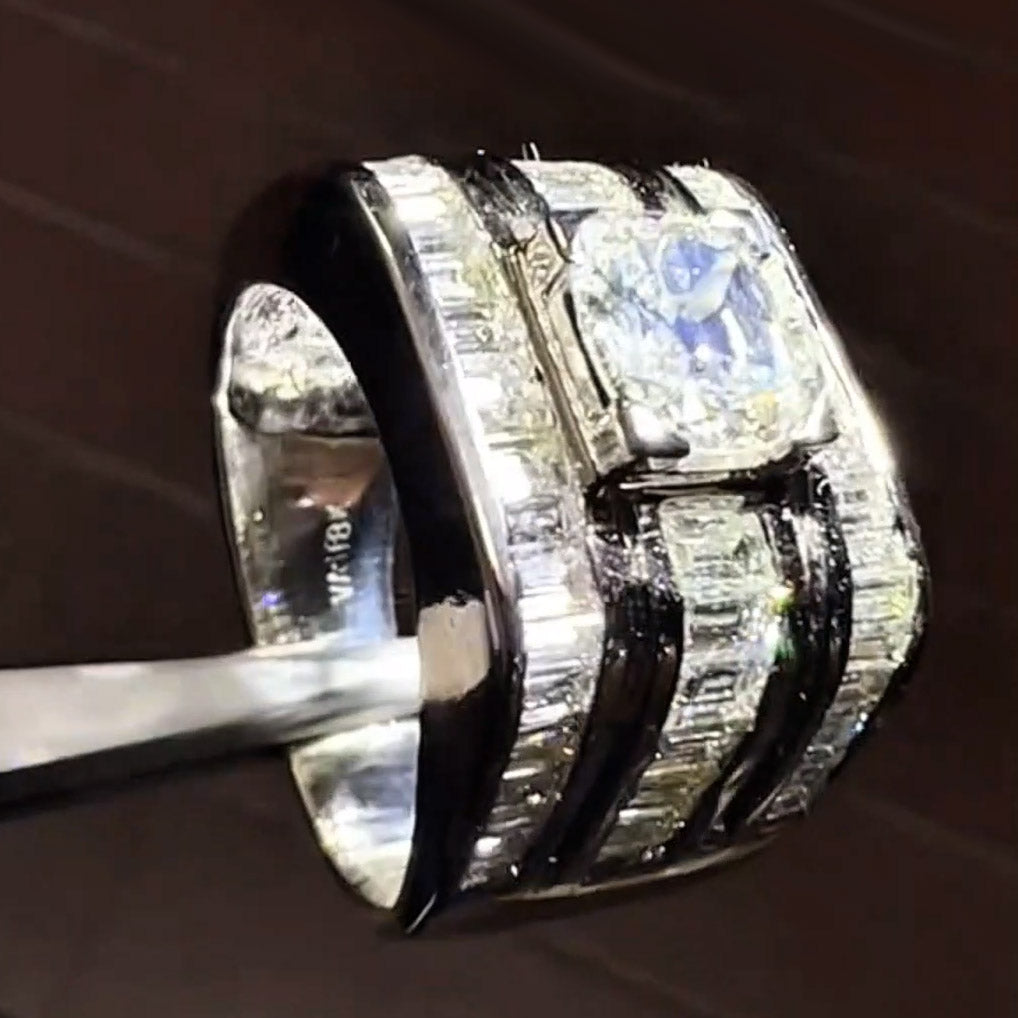 Unique 5 ctw Multi-Cut White Gemstone Patchwork Engagement Ring for Men and Women -JEWELBUYS