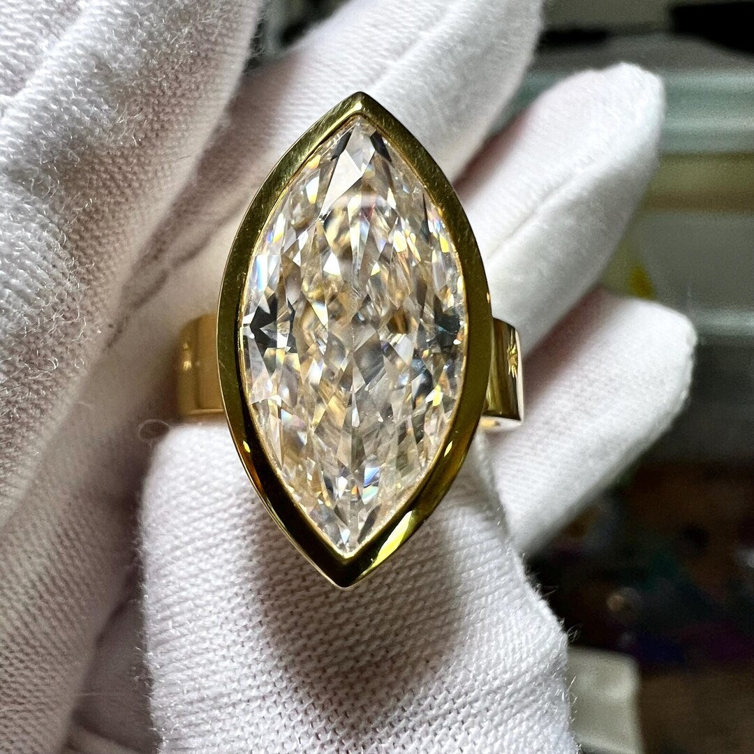Bezel Design 5ct Marquise Cut White Sapphire Stacking Bridal Ring Women's Engagement Ring in Gold-JEWELBUYS
