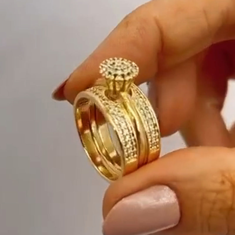 Unique Style 1ct Round Cut White Sapphire Women's Ring Set in Gold & Silver-JEWELBUYS