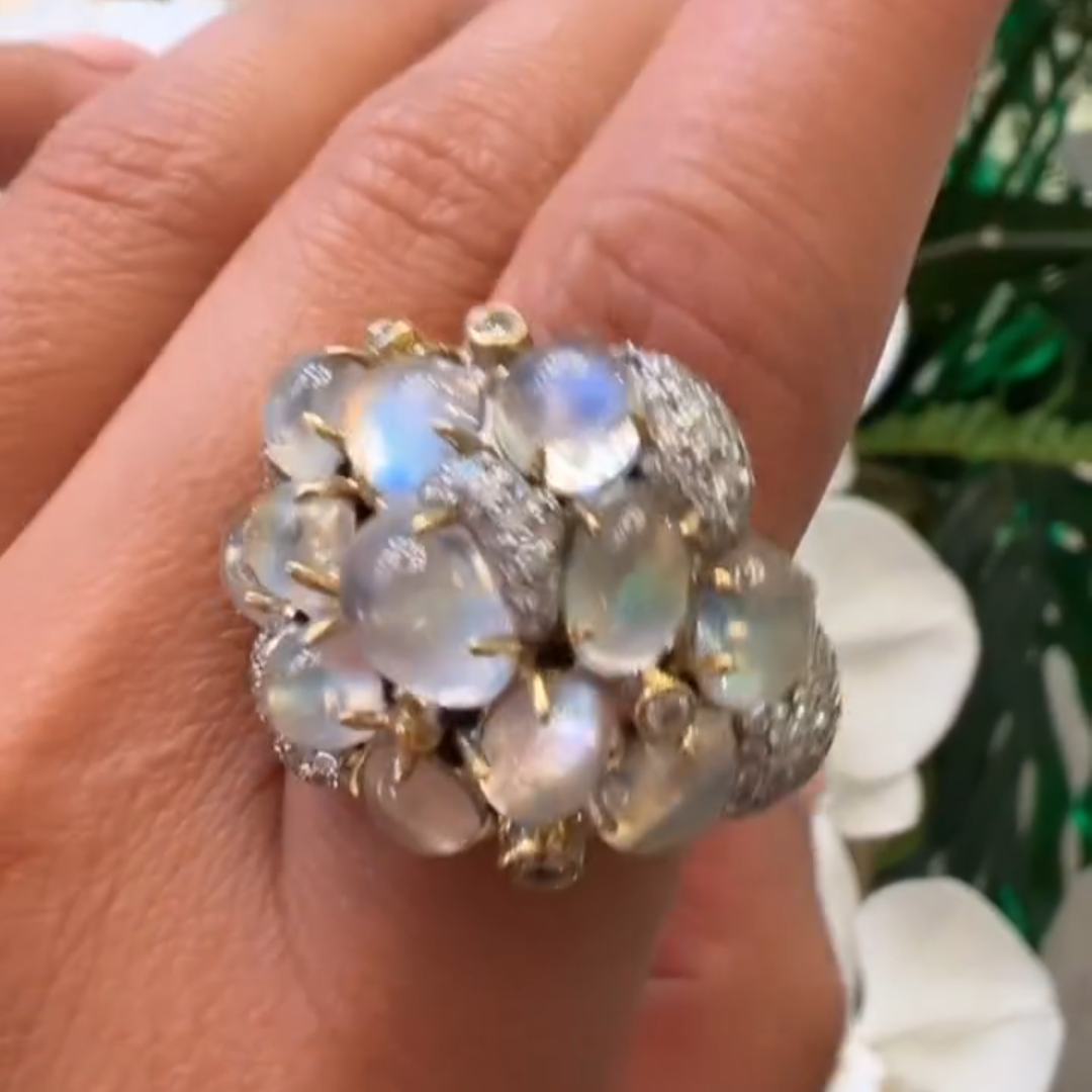 Regular price From $141.95 USDSale price From $141.95 USD Regular price $190.65 USDUnit price / perThis enchanting ring features a 6-carat cabochon moonstone, known for its mesmerizing adularescence, complemented by round cut white sapphires that add a touch of sparkle. Set...