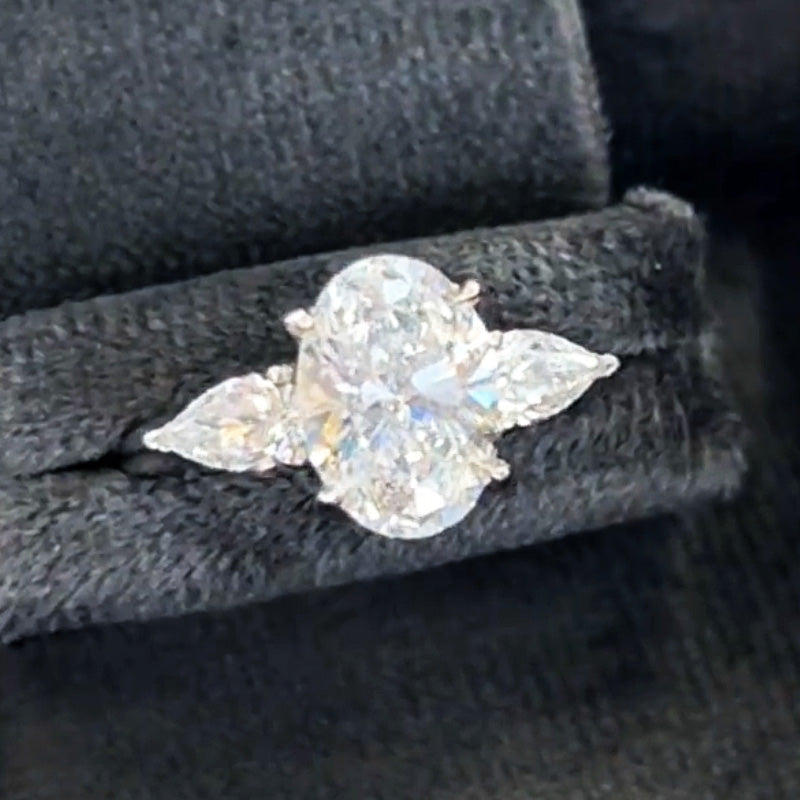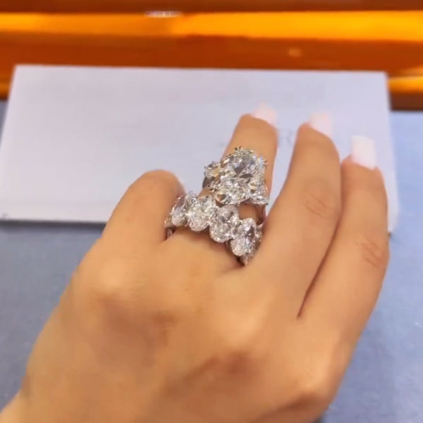 Sparkly 4ct Oval Cut Centered with Two Pear Cut White Sapphire Women's Engagement Ring in Silver-JEWELBUYS