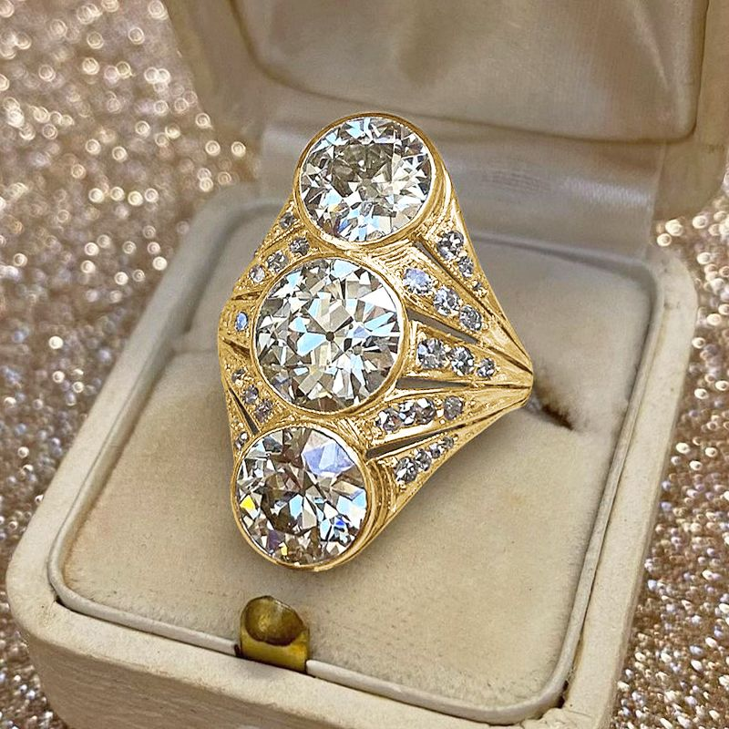 Regular price From $113.00 USDSale price From $113.00 USD Regular price $0.00 USDUnit price / perThe ring is centred with a round old cut diamond weighing 4.86ct in a polished setting and further adorned with 28 graduated baguette cut diamonds totalling...