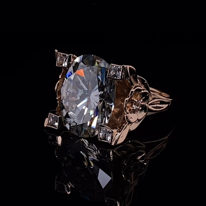 9.0ct Oval Cut Ladies Flower White Sapphire Ring -JEWELBUYS