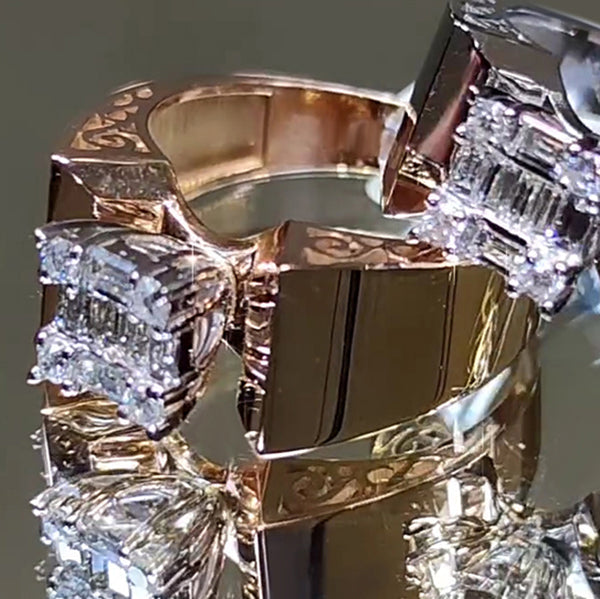 Regular price From $139.00 USDSale price From $139.00 USD Regular price $0.00 USDUnit price / perDescription An absolutely striking ring. Unique and noble. The center features a brilliant square cut white stone. Surrounded by baguette and trapezoid cut white stones. High...