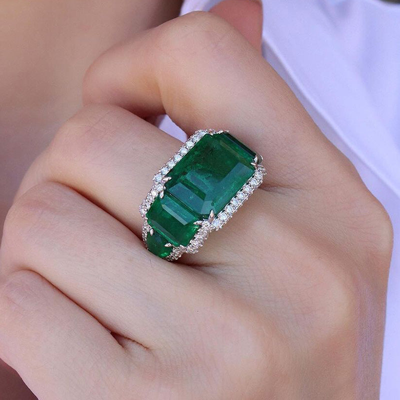 Elegant 13ct Emerald Cut Pave Green Sapphire Setting Engagement Ring-JEWELBUYS