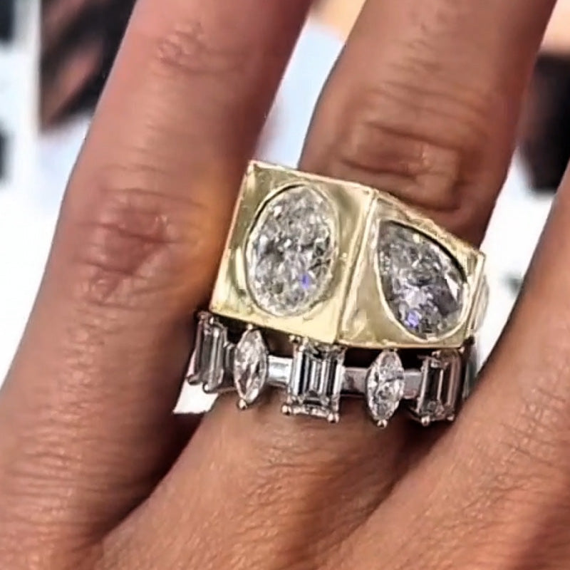 Exquisite 7.45ctw Oval & Pear Cut White Sapphire Bezel Setting Women's Engagement Ring in Gold-JEWELBUYS