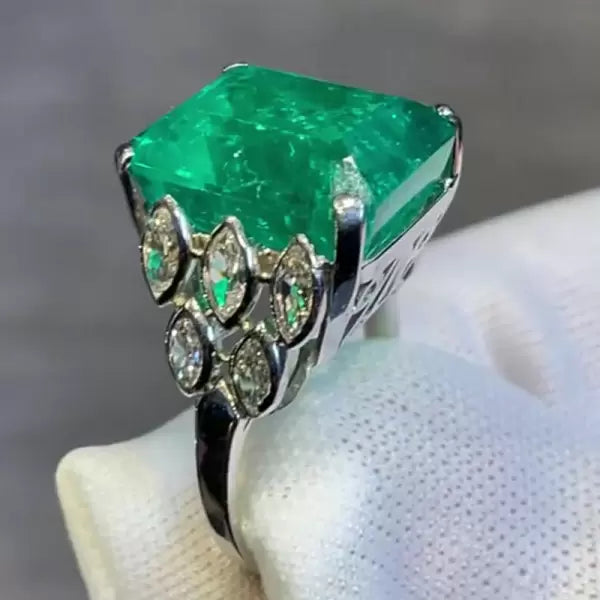 Vintage 15ct Emerald Cut Emerald Women's Engagement Ring-JEWELBUYS