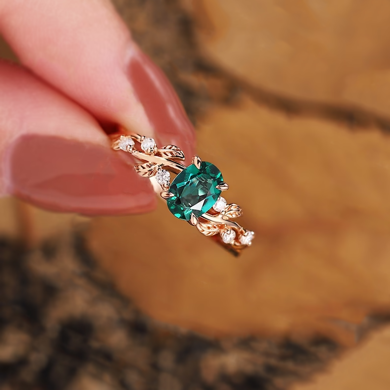 Regular price From $112.00 USDSale price From $112.00 USD Regular price $0.00 USDUnit price / perDescription This is a ring with exudes vibrant life. The twisting vine is unique and delicate. 2.5ct oval cut emerald main stone is mystical and bright....