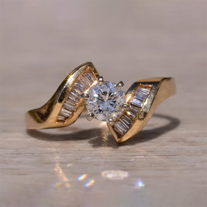 3.5ct Round Cut Gold Bypass Style Vintage Engagement Ring - JEWELBUYS