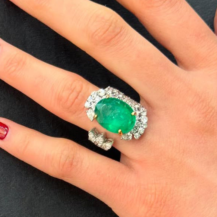 4.2ctw Oval Cut Emerald and Sapphire Open Ring-JEWELBUYS