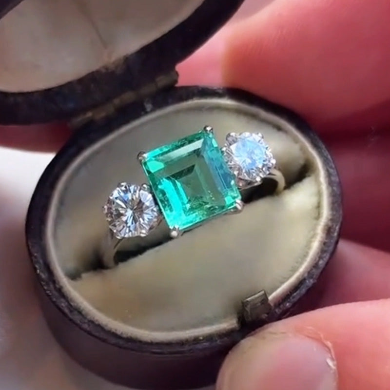 3.2ctw Vintage Colombian Emerald Sapphire Engagement Ring-JEWELBUYS
