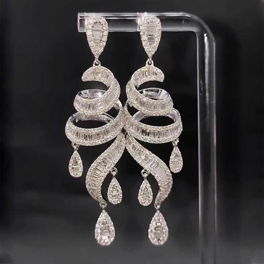 • Gorgeous 12 ctw Round Cut White Gemstone Waterfall Earrings -JEWELBUYS
