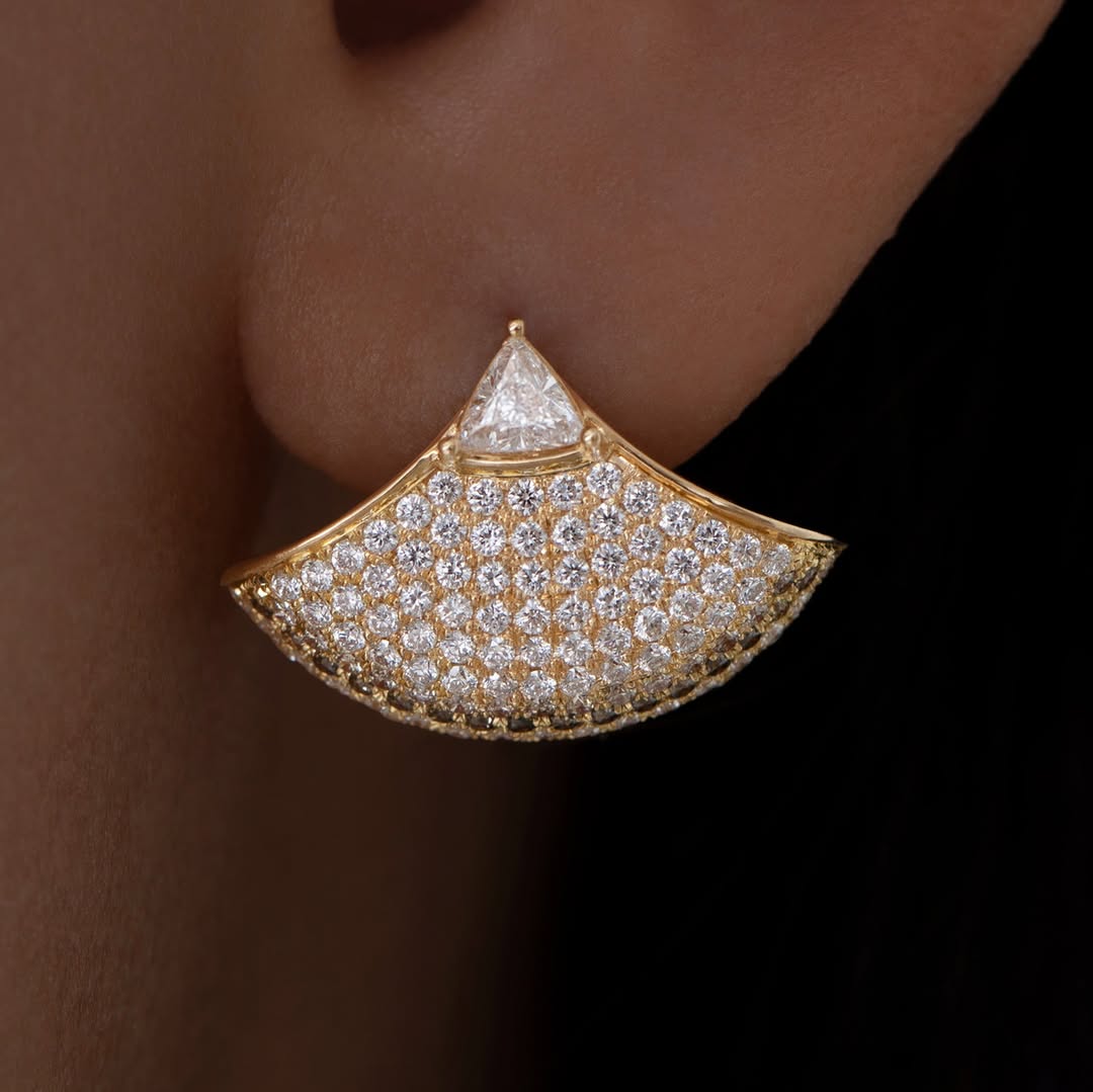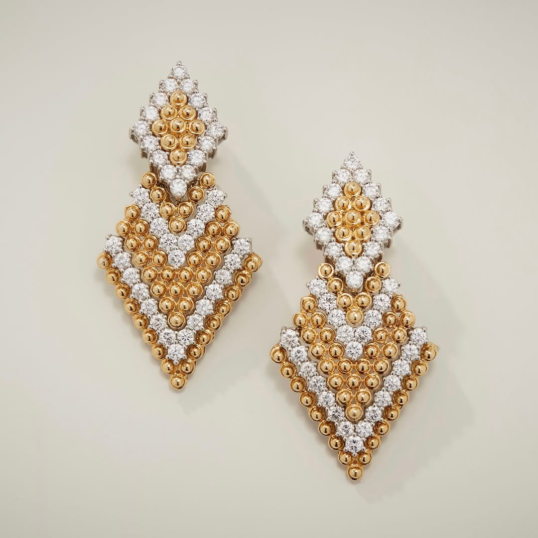 Regular price $120.95 USDSale price $120.95 USD Regular price $171.95 USDUnit price / per18K Electroplated Yellow Gold Beads and Platinum, weighing approximately 4.00 Ctw. These earrings are the perfect interplay of luxury and artistry. A geometric pattern of sparkling...