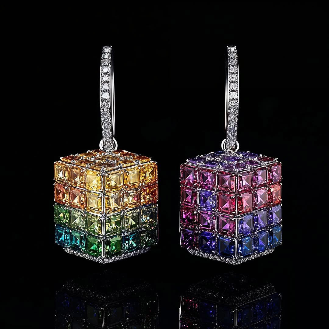 Regular price $120.95 USDSale price $120.95 USD Regular price $171.95 USDUnit price / perThe earrings are a pair of statement-making earrings that embody a kaleidoscope of brilliant brilliance in a bold, structured cube design. RING INFORMATION Metal: 925 Sterling...