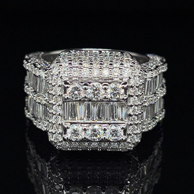 Regular price From $120.00 USDSale price From $120.00 USD Regular price $0.00 USDUnit price / perDescription The unique square ring is fully set with trapezoidal and round cut white stones. Stylishly dazzling and sparkling. Ring arms are set with trapezoidal and...