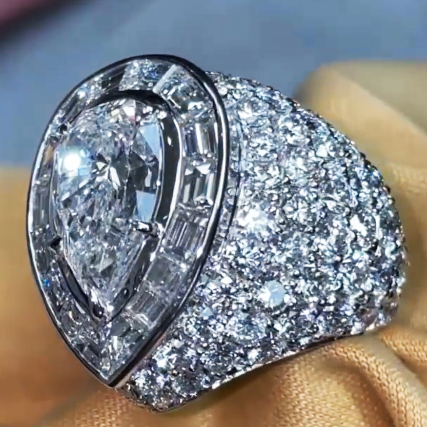 12ctw White Gemstone Pear Cut Full Set Ring - JEWELBUYS