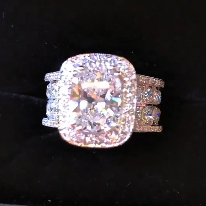 Regular price From $120.95 USDSale price From $120.95 USD Regular price $171.95 USDUnit price / perA stunning high quality S925 silver and sapphire sparkling ring.Designed with 30 princess square sapphires and hundreds of round brilliant cut sapphires. Estimated total carat weight is approximately 8ctw. All the sapphires are well matched and very clean, bright, white and sparkling. RING INFORMATION Metal: 925 Sterling Silver Plating Color: Silver Rhodium: Yes Nickel Free: Yes PRIMARY STONE Stone Type: Lab-created gemstone Primary Stone Color: White Stone...