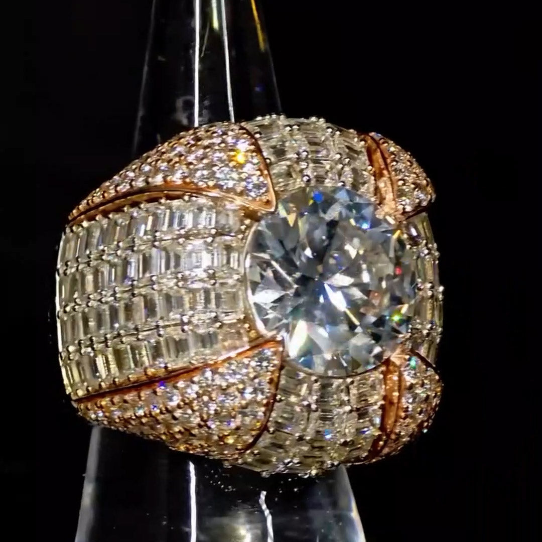 6.34ctw Rose Cut White Sapphires Bold Rose Gold and Gold Ring-JEWELBUYS