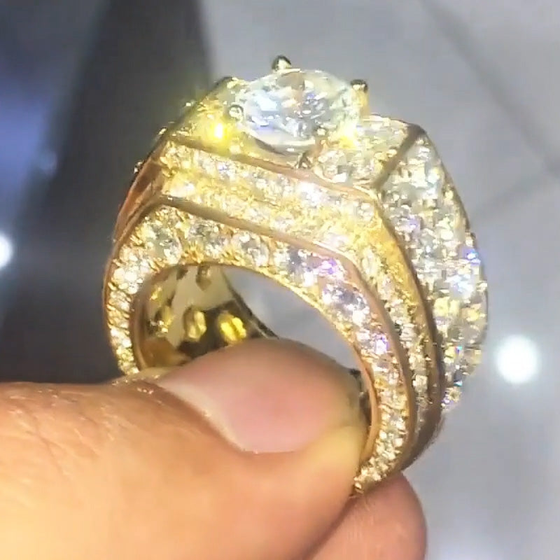 8.0Ctw Oval Cut White Sapphire Hip Hop Men's Ring-JEWELBUYS