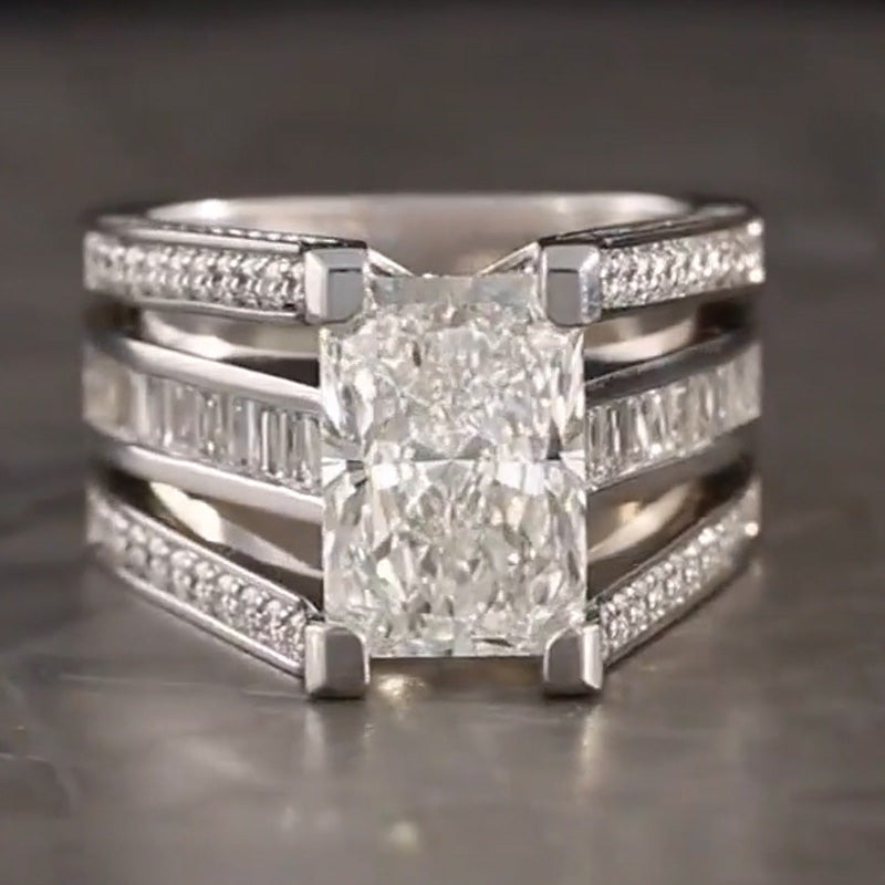 5.01ct Radiant Cut Triple Row White Sapphire Engagement Ring-JEWELBUYS