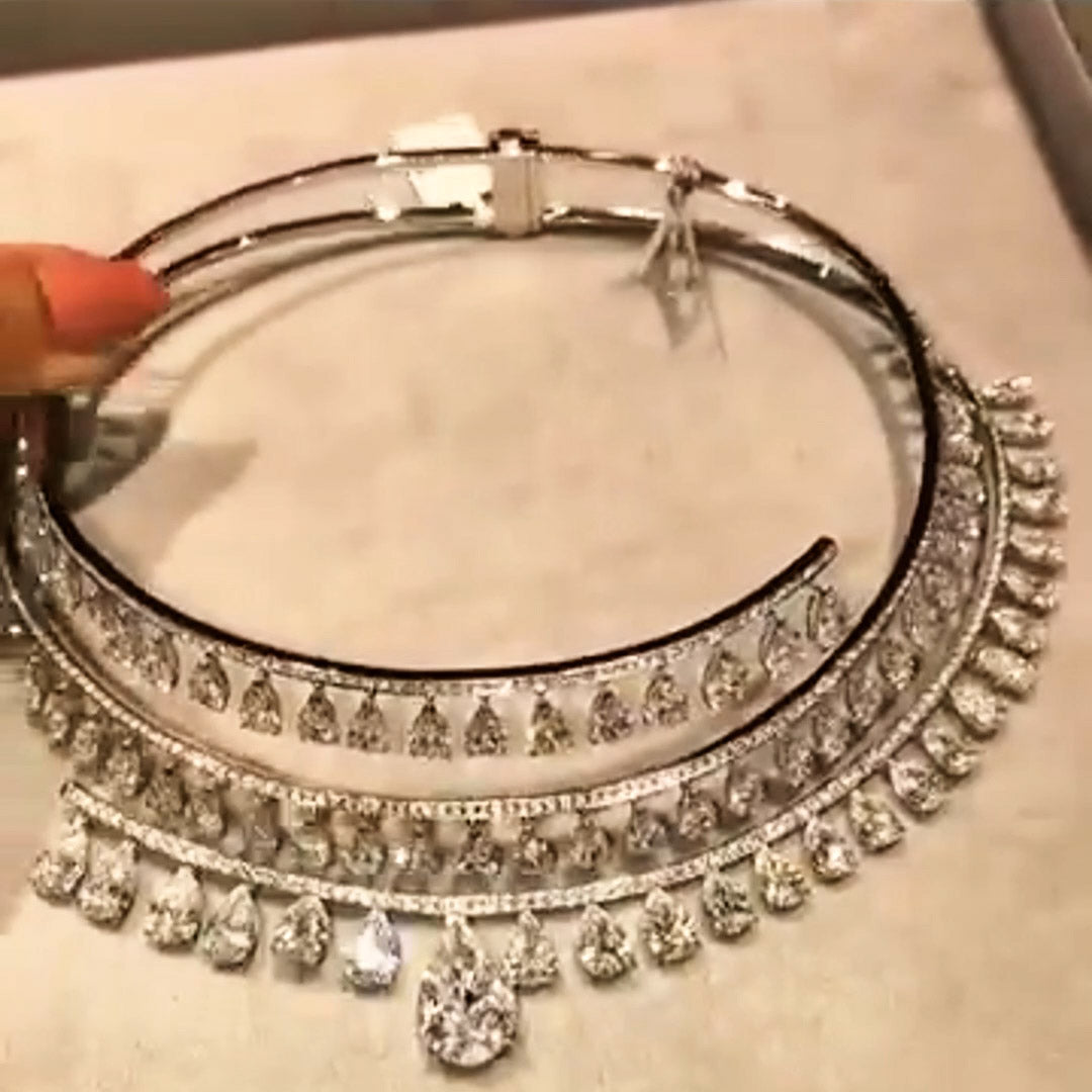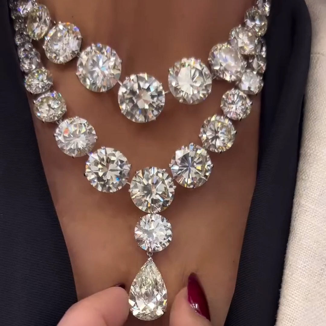 65ctw Pear and Round Cut Large Gemstone Luxurious Luxury Necklace-JEWELBUYS