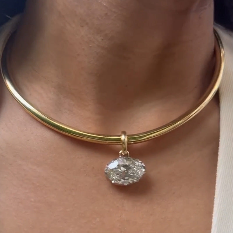 Beautiful torque collar with an oval brilliant gemstone pendant of approximately 6.8ct, beautiful in its simplicity.   NECKLACE INFORMATION Metal: 925 Sterling Silver Plating Color: Gold...