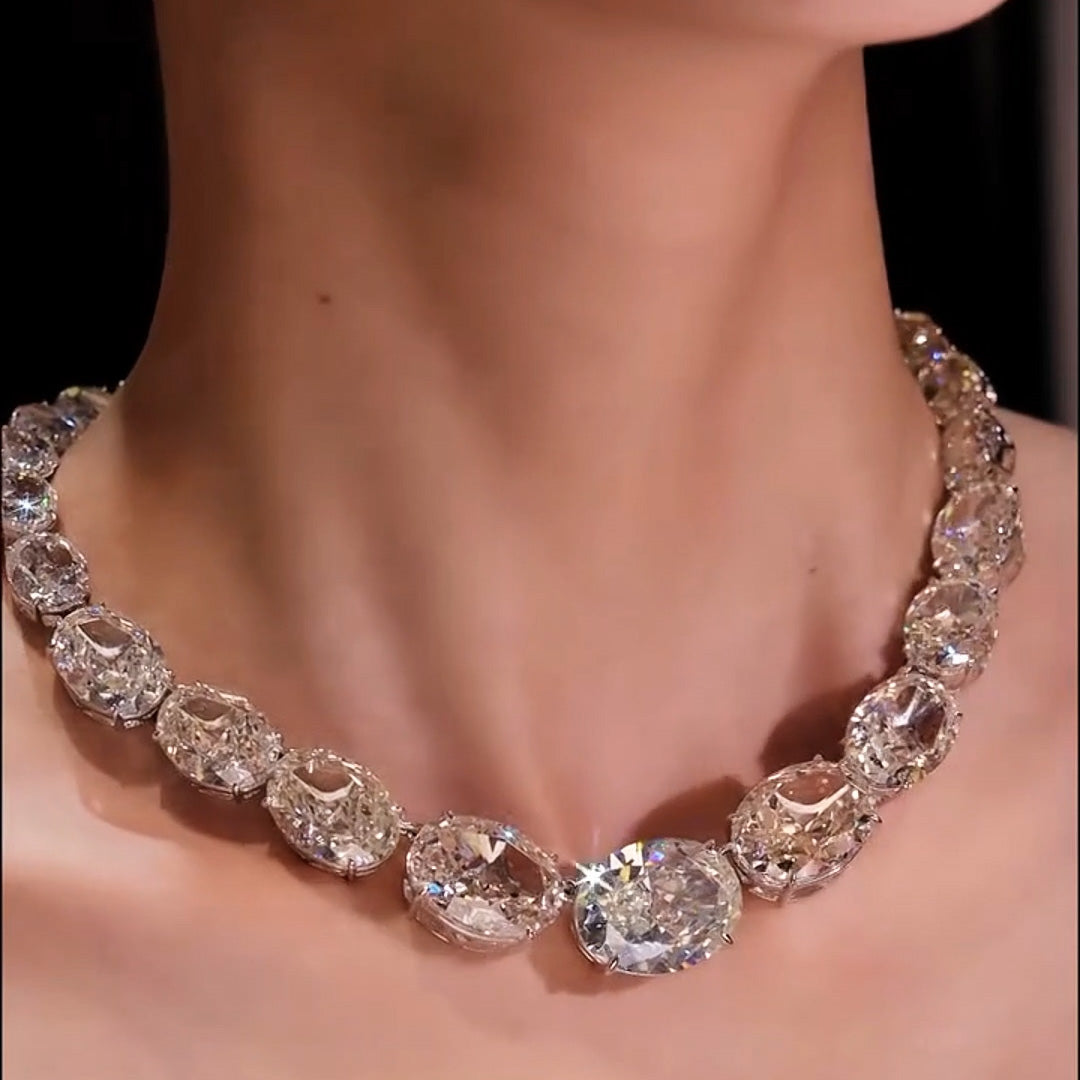 100ctw Luxury Romantic Oval Cut White Sapphire Necklace-JEWELBUYS