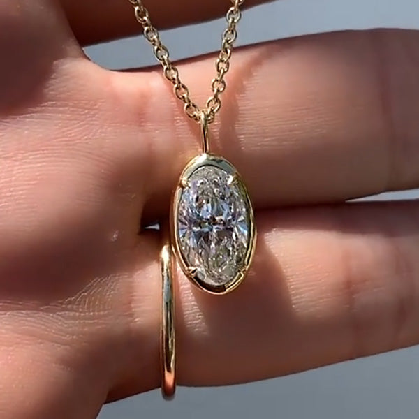 Regular price $95.00 USDSale price $95.00 USD Regular price $0.00 USDUnit price / perAntique style 2.00ct oval cut diamond pendant with single diamond bezel setting. simple yet elegant. The necklace is made of 925 silver with thick gold plating....