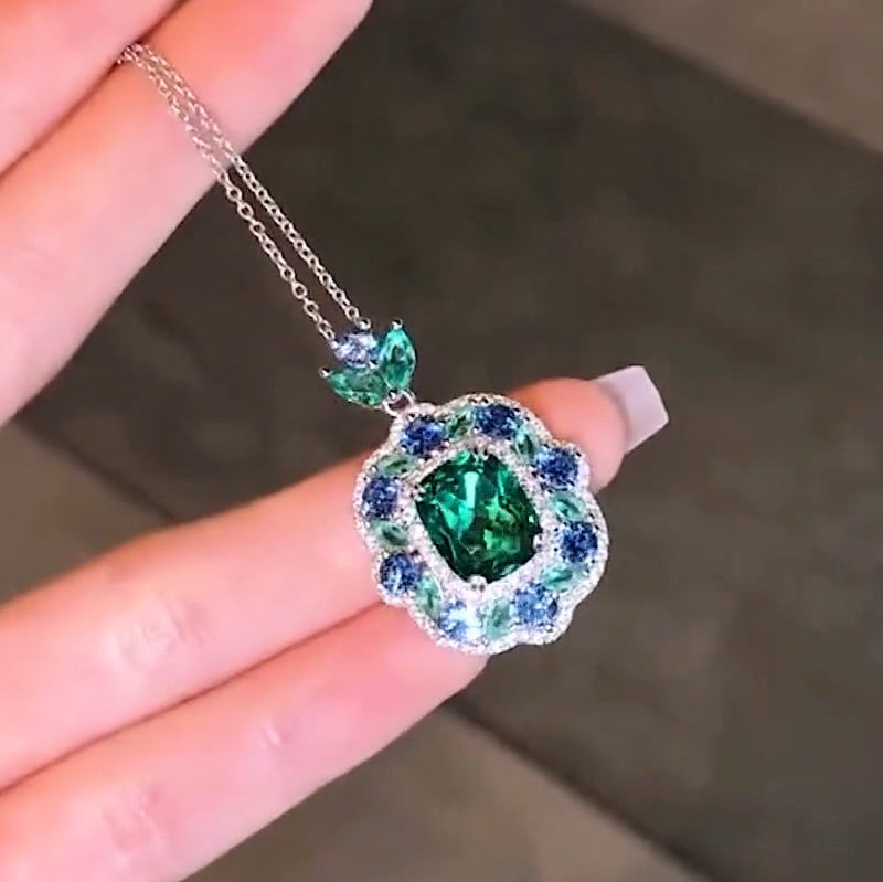 8ct Cushion Cut Blue and Emerald Gemstone Necklace - JEWELBUYS