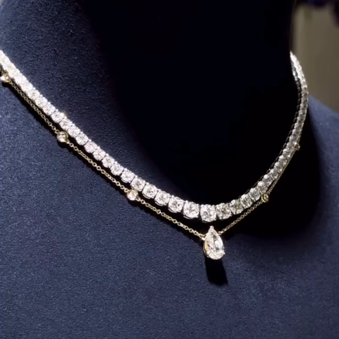50ctw Round Cut Tennis Necklace With Pear Shaped Pendant Necklace-JEWELBUYS