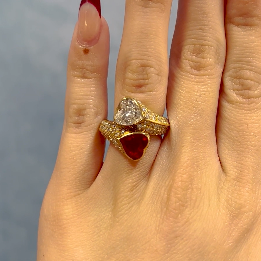 2ct Two Color Heart Cut Ruby White Gemstone Vintage Two Stone Ring - JEWELBUYS