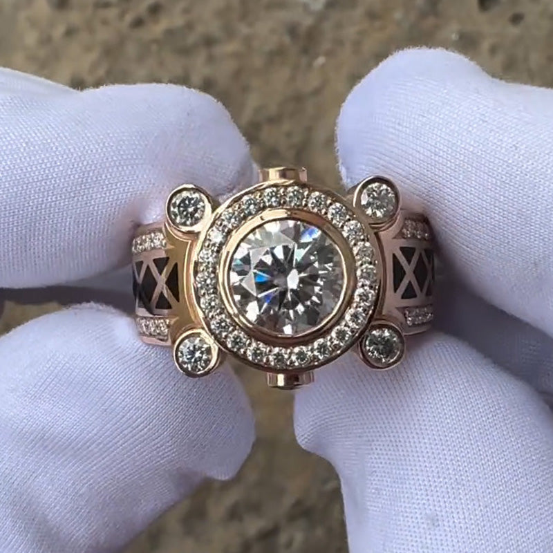 3.5ctw Round Brilliant Cut Old Art Gemstone Ring -JEWELBUYS