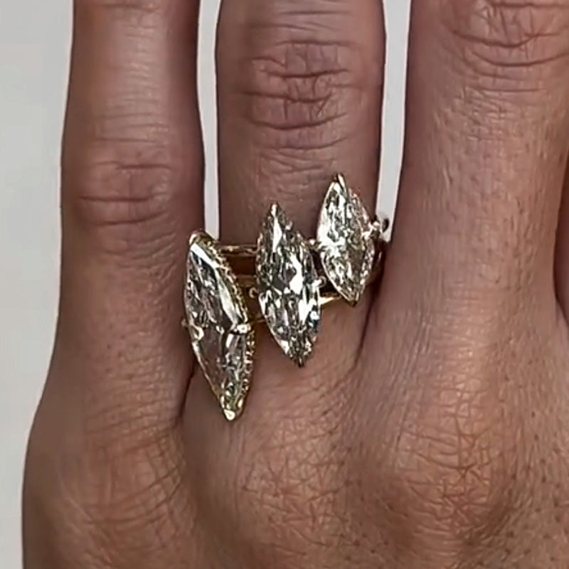 5ct East-West Marquise with Double Stacked Diamond Ring - JEWELBUYS