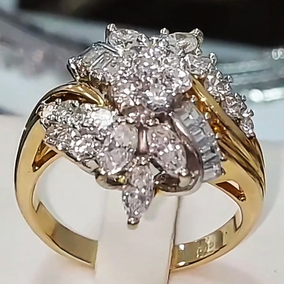 5.23Ctw Round and Trapezoidal Cut Blooming White Sapphire Ring-JEWELBUYS