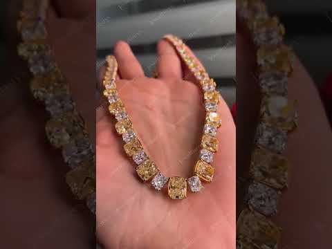 100.6Ctw Unique and Beautiful Cushion Cut Yellow White Sapphire Necklace-JEWELBUYS