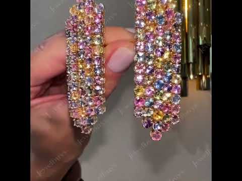 10ctw Magical Colorful Sapphire Linear Stone Dangle Earrings-JEWELBUYS