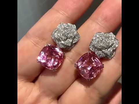 About 10ct 2pcs luxury so beautiful Morgan pink sapphire earrings. With floral design styling, romantic and charming.