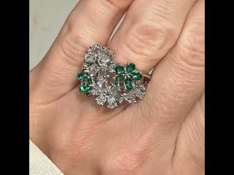 14ct Pear Cut Emerald and White Diamond Floral Ring - JEWELBUYS