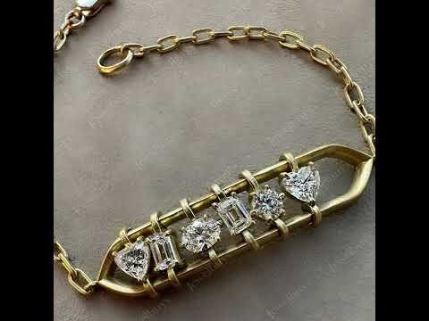 We can't wait to share this custom-made "floating" sapphire bracelet. It features gemstones in various shapes, including heart-shaped, oval, emerald-cut, and round... it truly has everything!